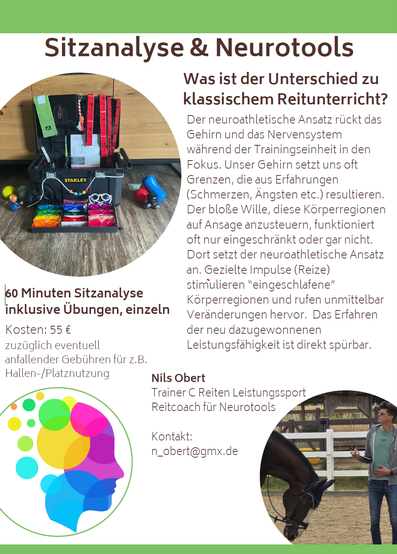 Nils Obert, Trainer C Reiten Leistungssport und Reitcoach für Neurotools möchte bei uns im Verein einen Lehrgang zur Sitzanalyse anbieten.